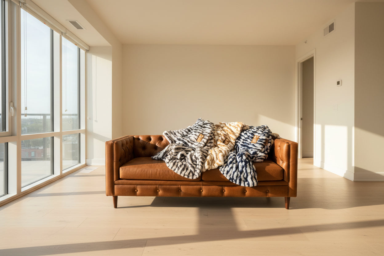 Burrow into our most huggable, ultra plush snuggle - Snow Chinchilla. The two-tone color patterns and unique elastic gathering give you the perfect companion for those days you just need to wrap yourself up and feel cuddled.